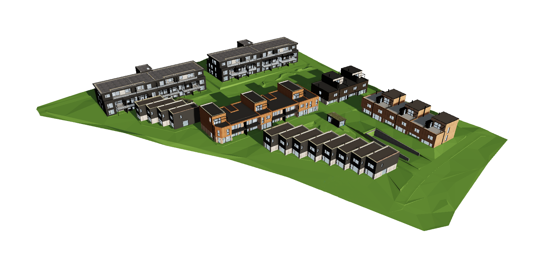 Myklatun er nøye planlagt, og dette blir et hyggelig sted for store og små, også utendørs. Mellom husene ligger trivelige, bilfrie gatetun og koselige gangstier, og rekkehusene er plassert slik at ingen ligger like overfor hverandre. Til sammen oppleves bebyggelsen, og nabolaget, som mangfoldig og variert.
